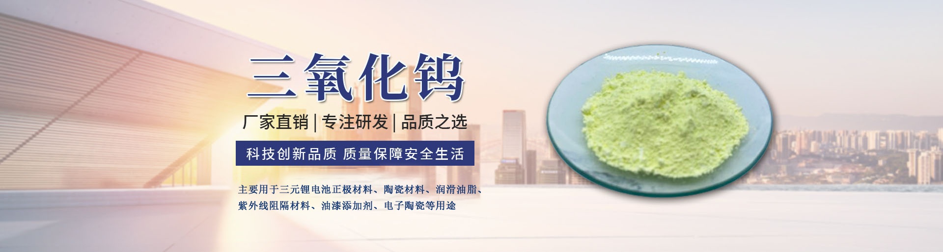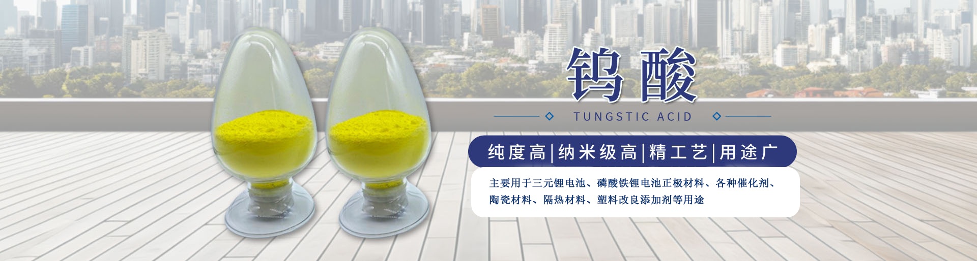 福建辰拓新材料有限公司(原龍巖市弘泰耐火材料有限公司 ),位于風(fēng)景秀麗,山青水秀的福建省龍巖市新羅區(qū)雁石鎮(zhèn)龍雁東三道1號(hào),公司距國(guó)道G235只有2千米,離漳(平)永(定)高速入口處僅有4千米,交通十分便利,廠(chǎng)區(qū)占地面積80畝;投資1000萬(wàn)元專(zhuān)業(yè)生產(chǎn)納米級(jí)高純度鎢系列金屬粉末,產(chǎn)品有鎢酸、三氧化鎢、藍(lán)色氧化鎢、紫色氧化鎢、二氧化鎢、銫鎢青銅等產(chǎn)品質(zhì)量良好。其中納米級(jí)鎢酸、納米級(jí)三氧化鎢已廣泛用于石油、化工催化劑、隔熱材料、特種陶瓷、鋰電池正極材料等領(lǐng)域。 公司歡迎各界朋友光臨惠顧! 聯(lián)系人:陳培成 13859586568(微信同號(hào)) 陳哲超 18598270117(微信同號(hào)) 電子郵箱:lyhtnhcl@sina.com 傳真: 0597—2683568