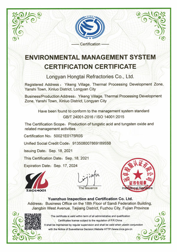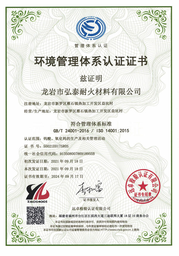 環(huán)境管理體系認(rèn)證證書(shū)